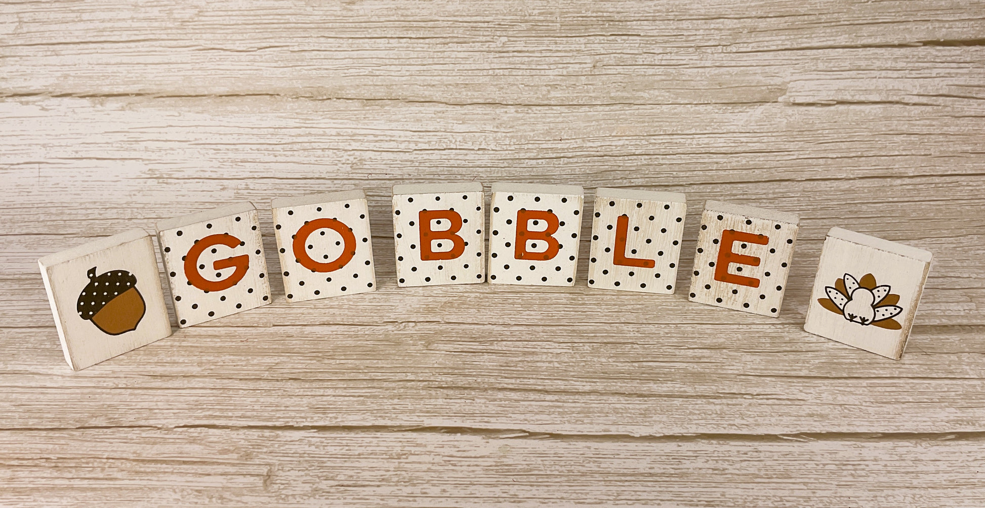 ITEM: Fall Decor - Gobble Small Wood Tiles and Icons