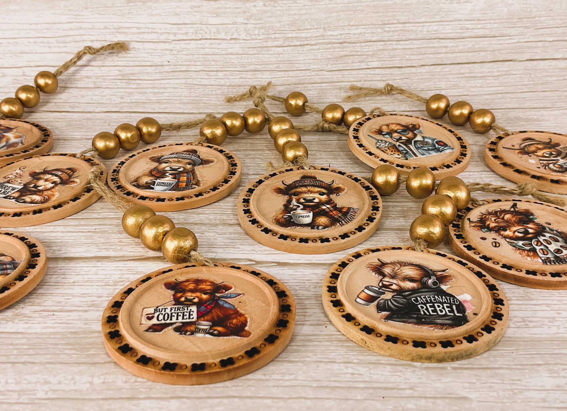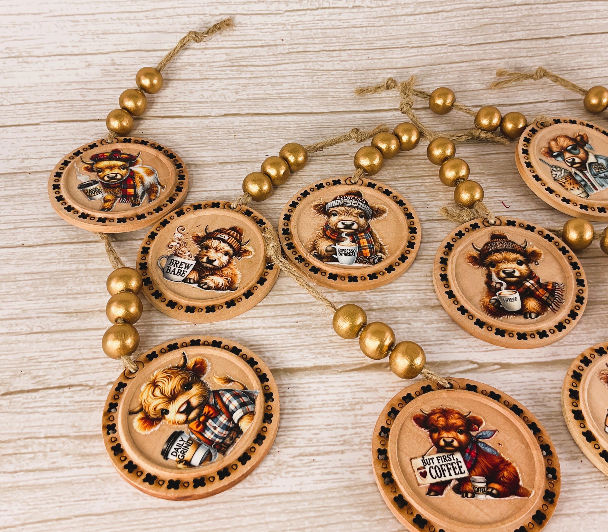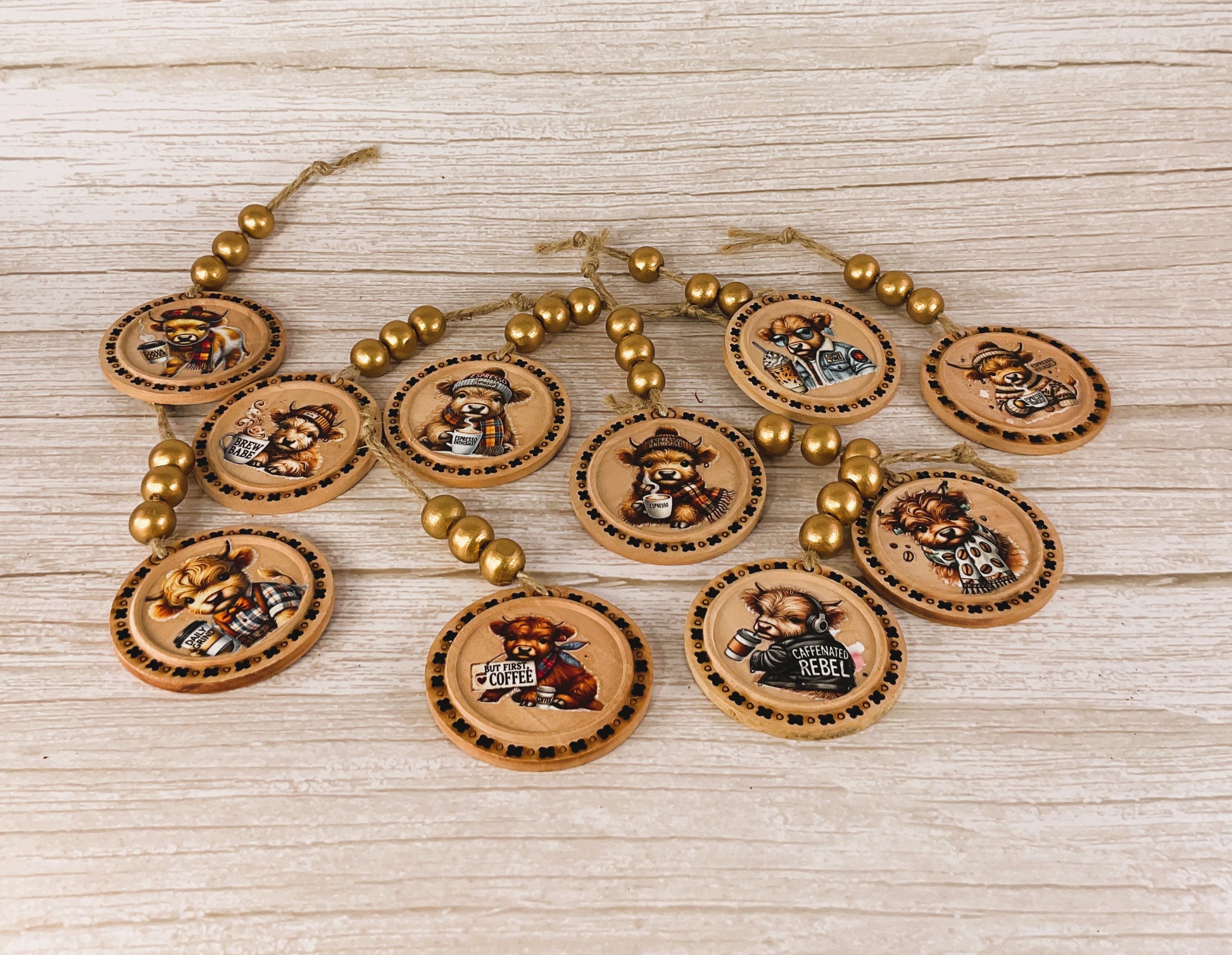 ITEM: Christmas Decor - Coffee Latte Theme Highland Cow Ornaments 10pc