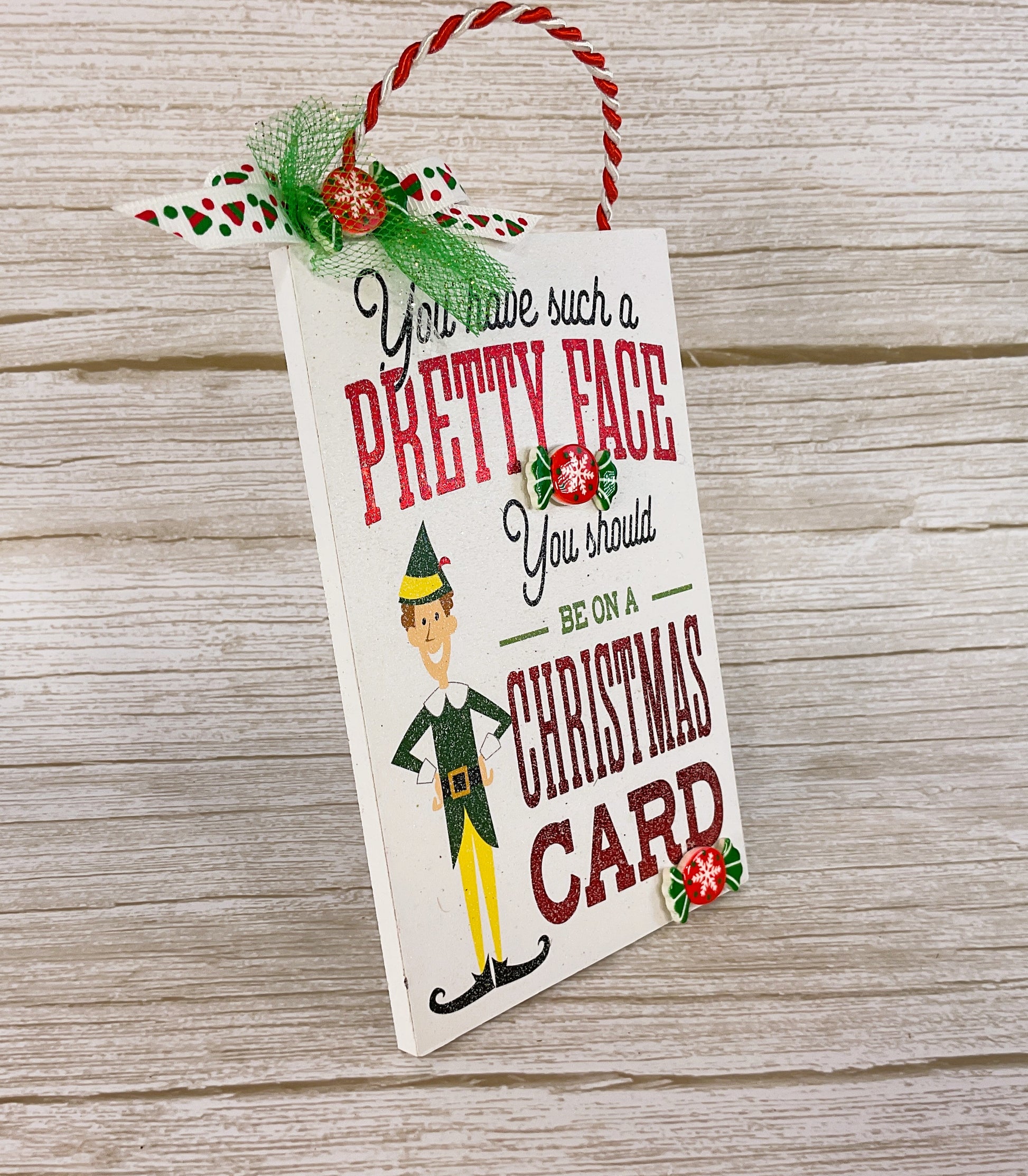 ITEM: Christmas Decor - Elf Buddy Pretty Face on Card Easel Sign