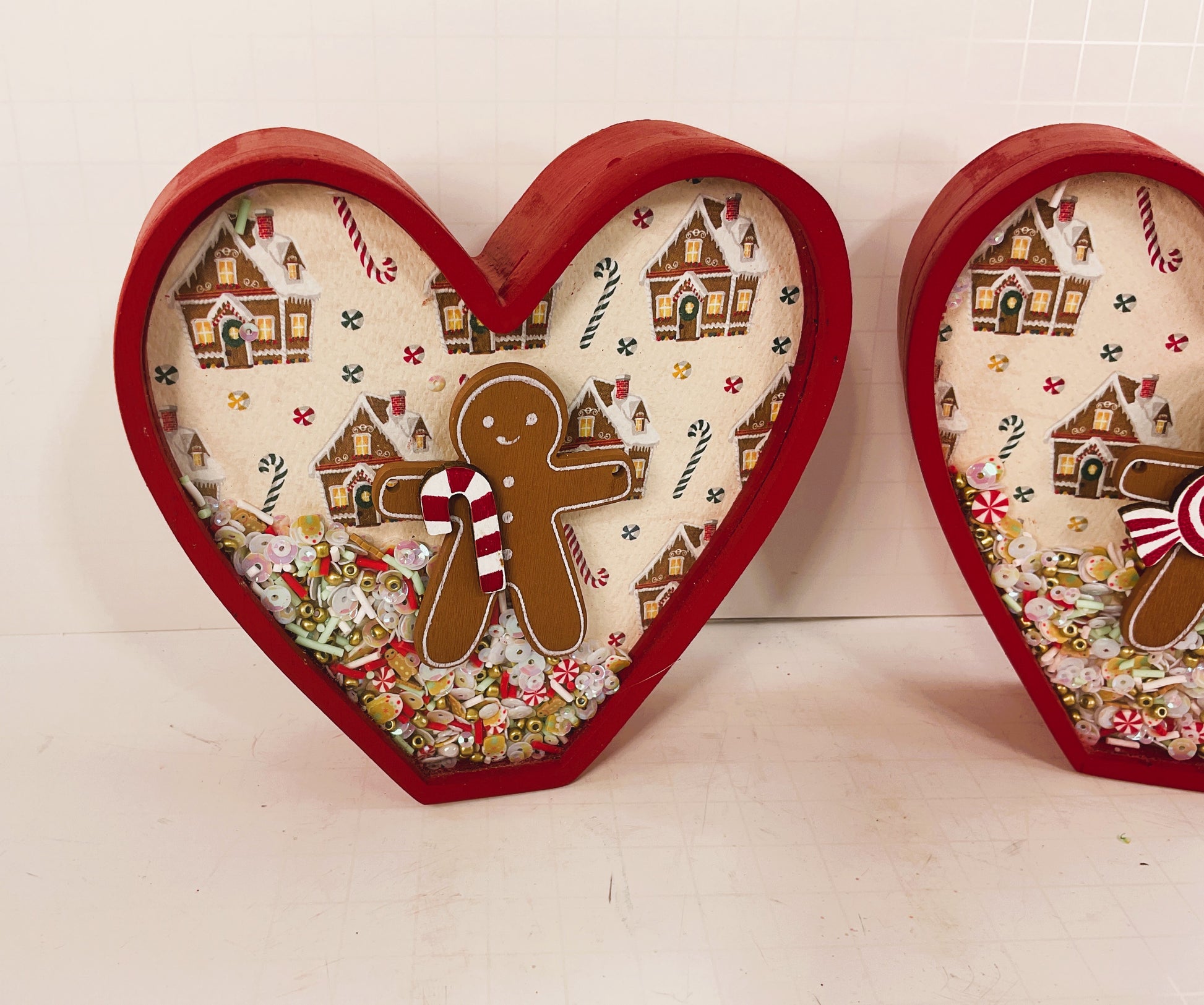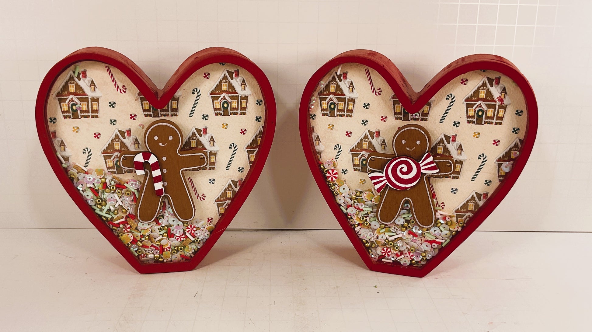 ITEM: Christmas Decor - Gingerbread Heart Chunky Wood Tabletop Sitters 2pc