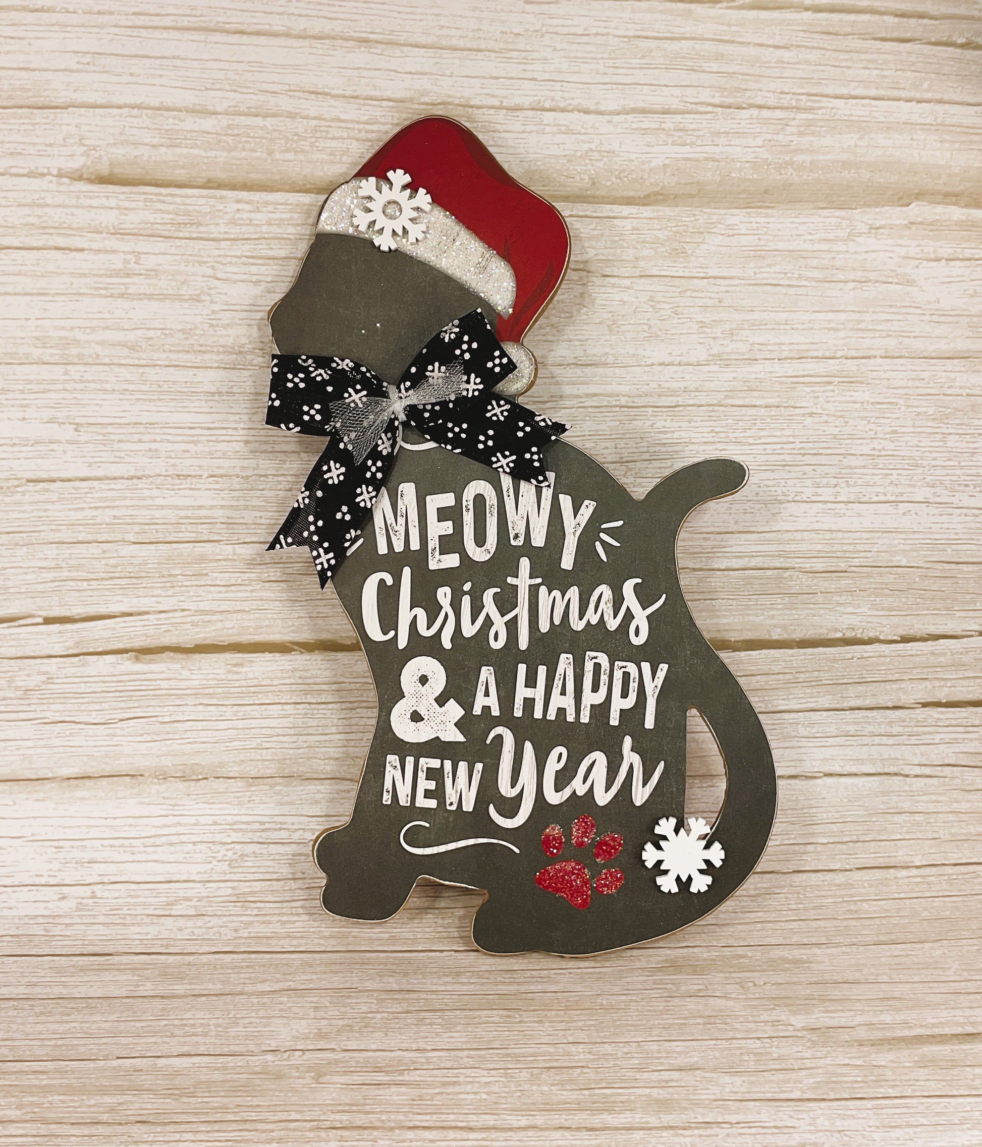 ITEM: Christmas Decor - Meowy Christmas Cat Wreath Wall Sign