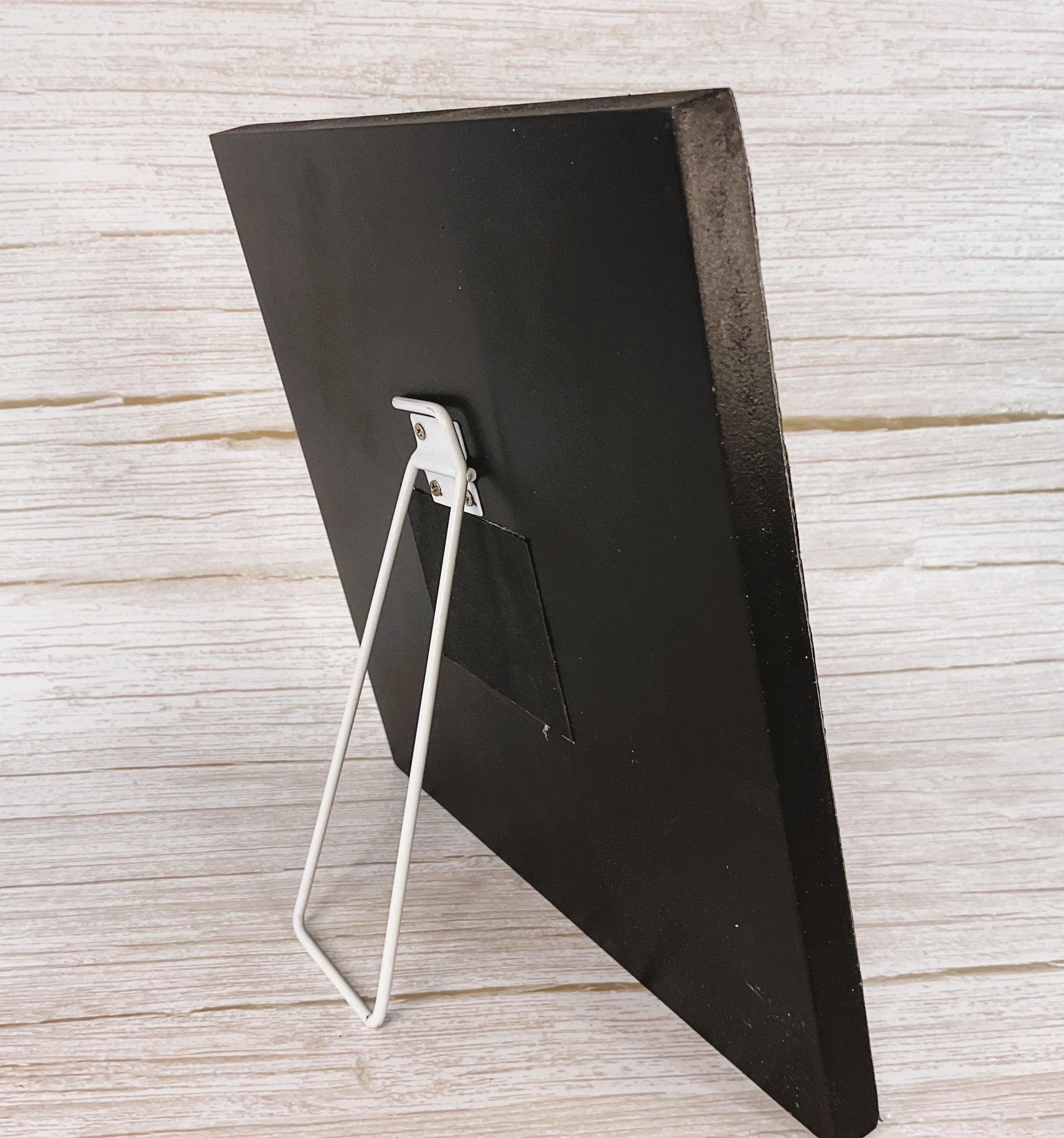 DETAILS: Wood, paper, paint/stain and vinyl construction. Easel back stand. See picture for details.