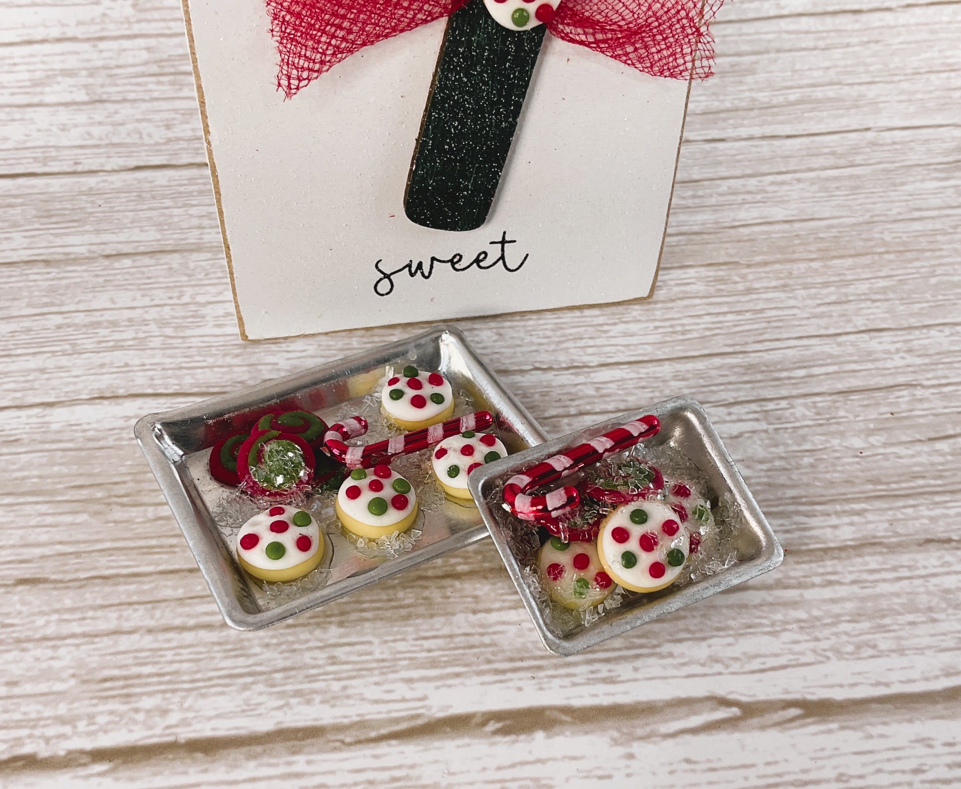 ITEM: Christmas Decor - Miniature Cookies on Cookie Sheets and Sign 3pc