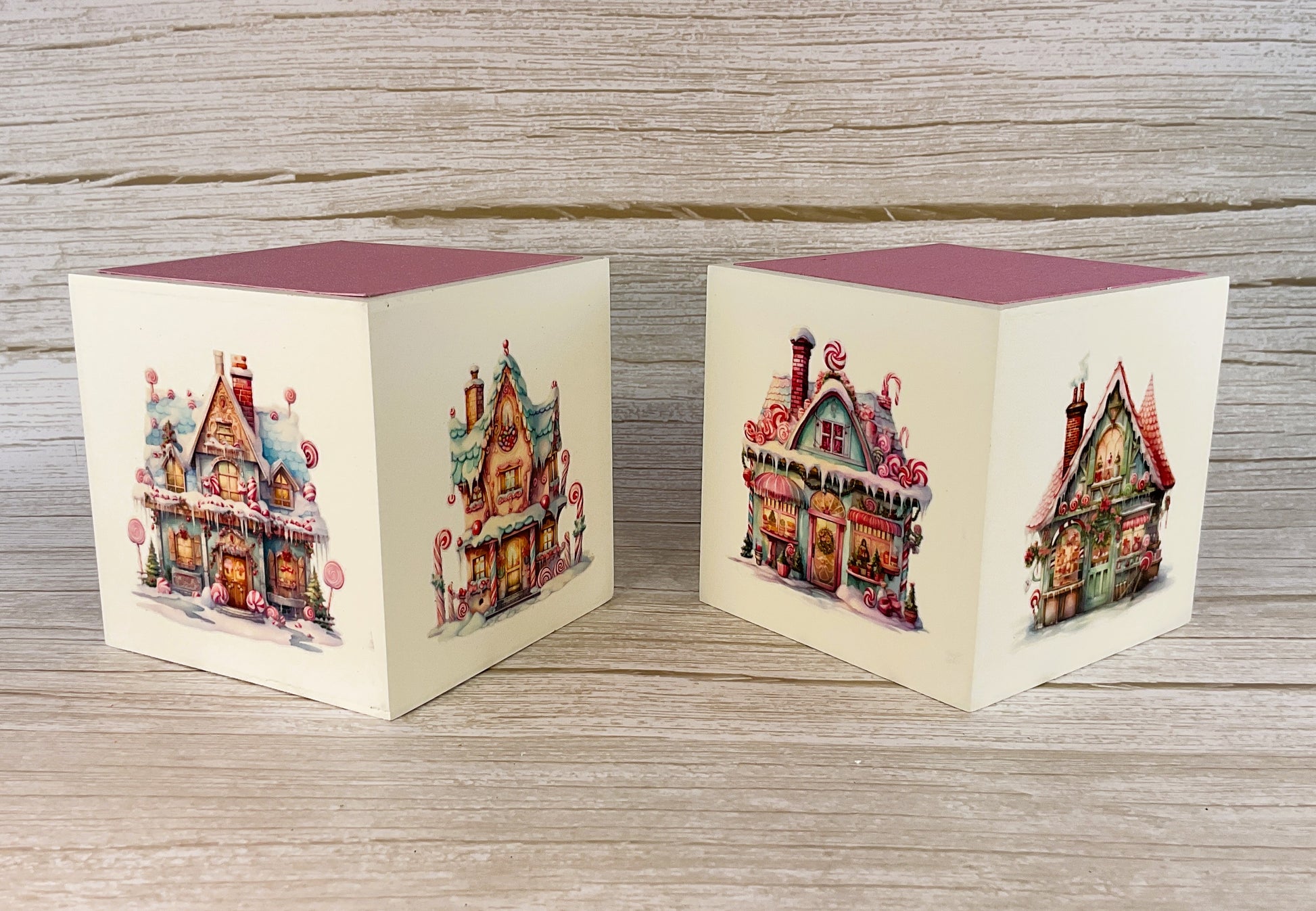 ITEM: Christmas Decor - Pastel Gingerbread Houses Block Signs 2pc