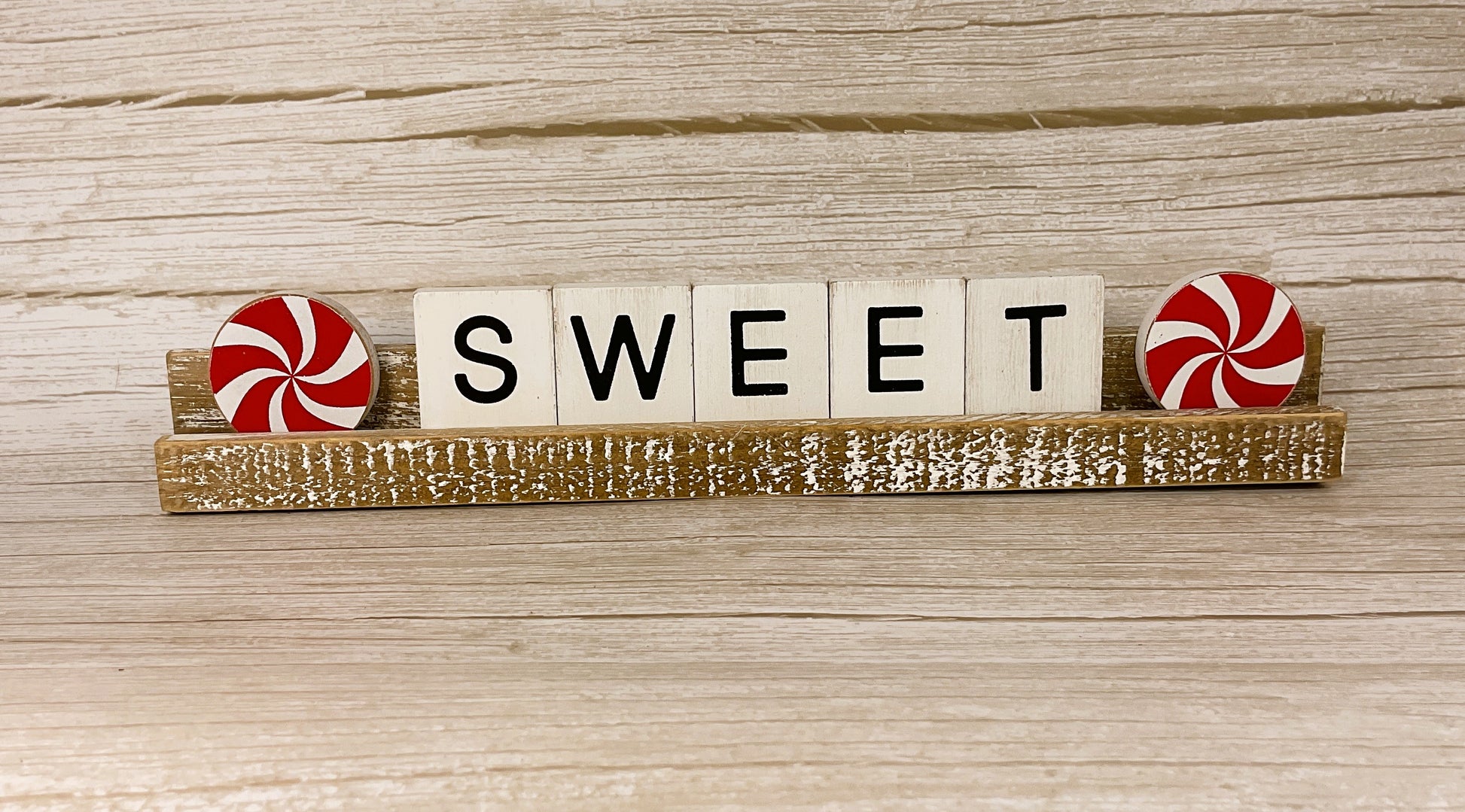 ITEM: Christmas Decor - Peppermint Candy Sweet Wood Tile Sign