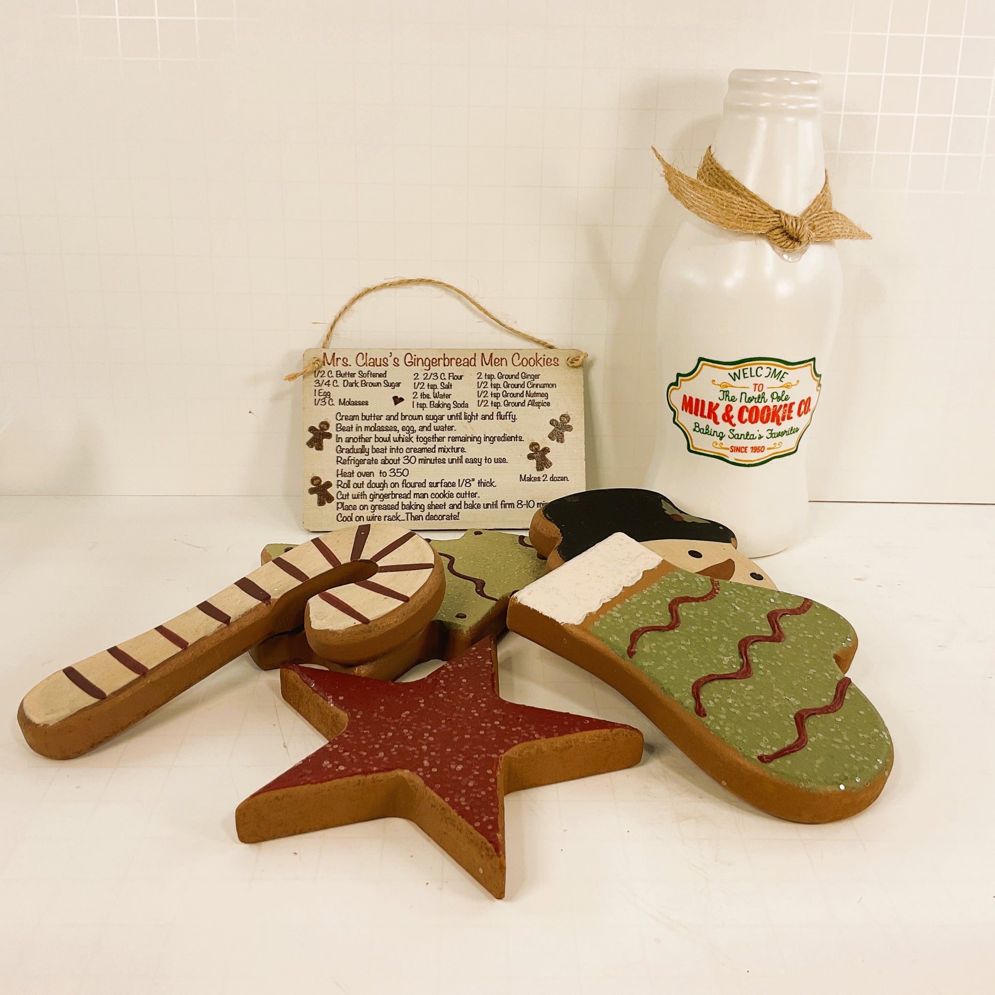 ITEM: Christmas Decor - Prim Milk Gingerbread Cookies for Santa Set
