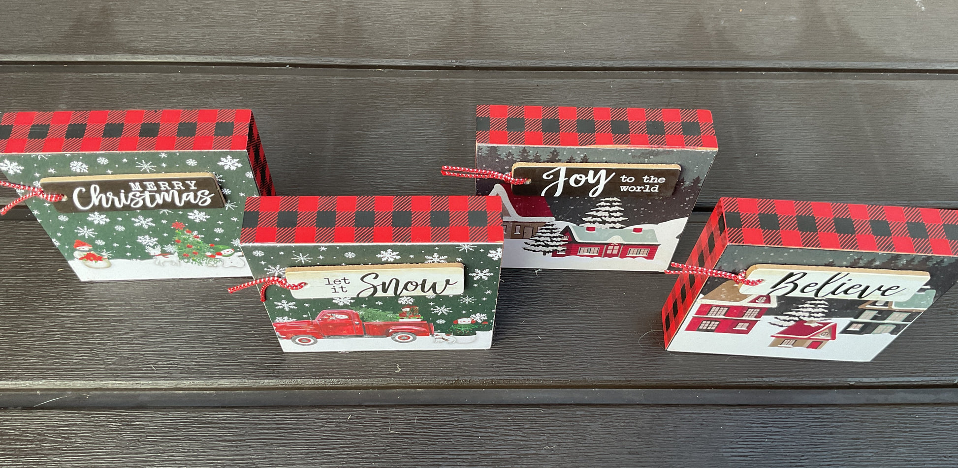 ITEM: Christmas Decor - Red Black Buffalo Snow Village Block Scene 4pc