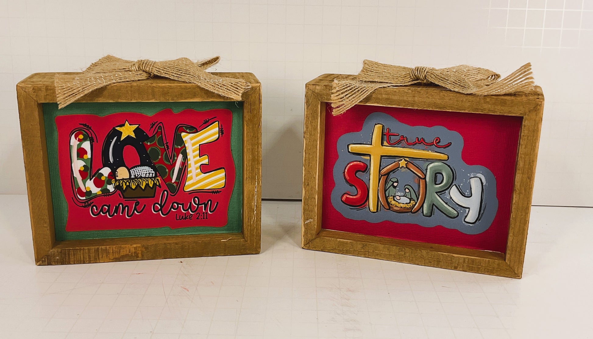 ITEM: Christmas Decor - Whimsical Nativity Theme Inset Box Signs 2pc