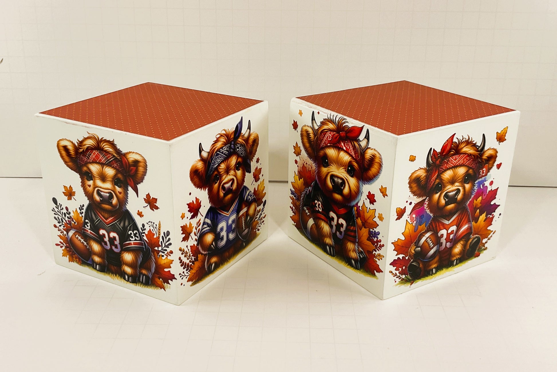 ITEM: AGD Fall Decor - Football Theme Baby Highland Cow Block Signs 2pc