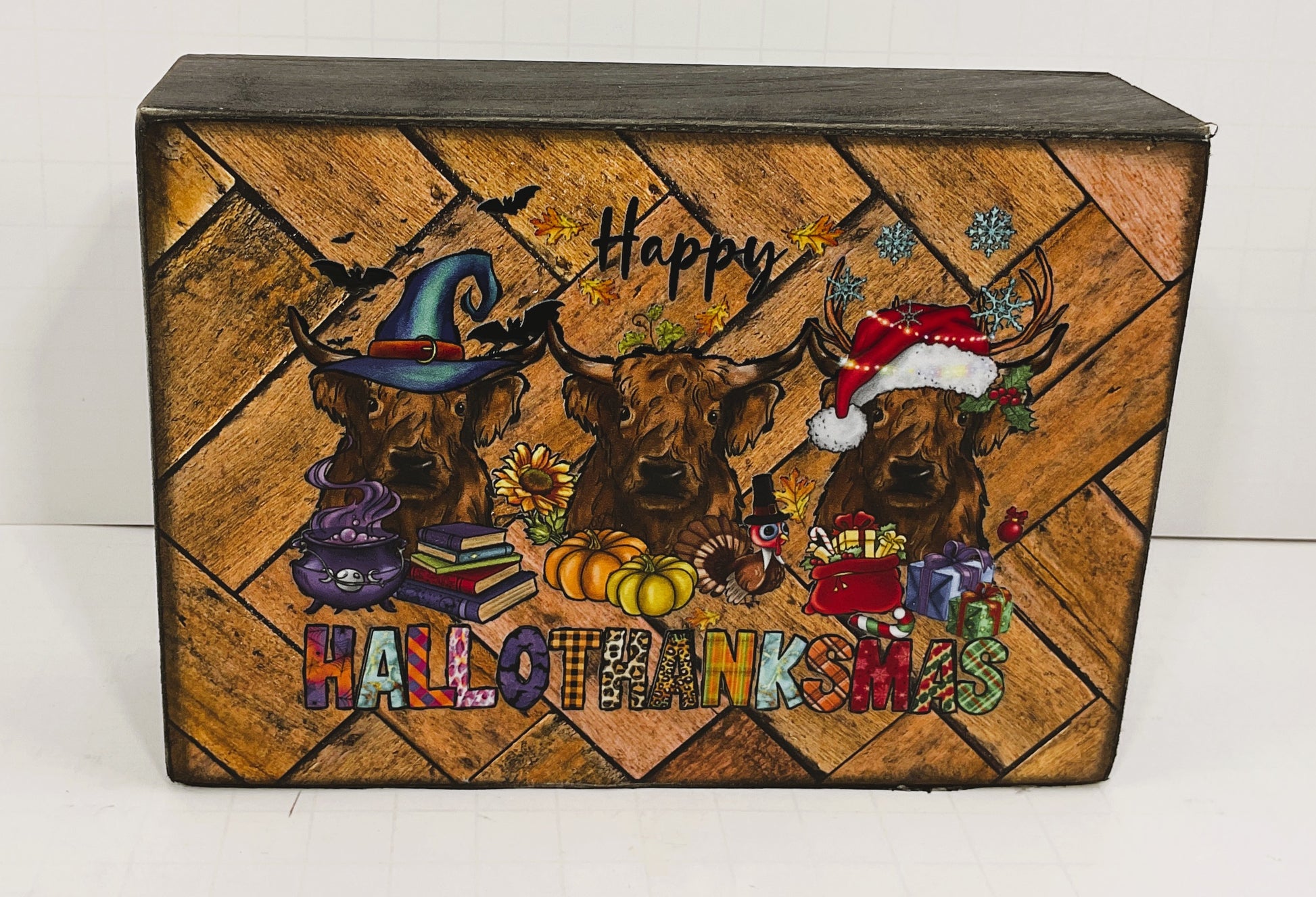 ITEM: Fall Decor - Highland Cow Hallothankmas Multi Seasonal Box Sign