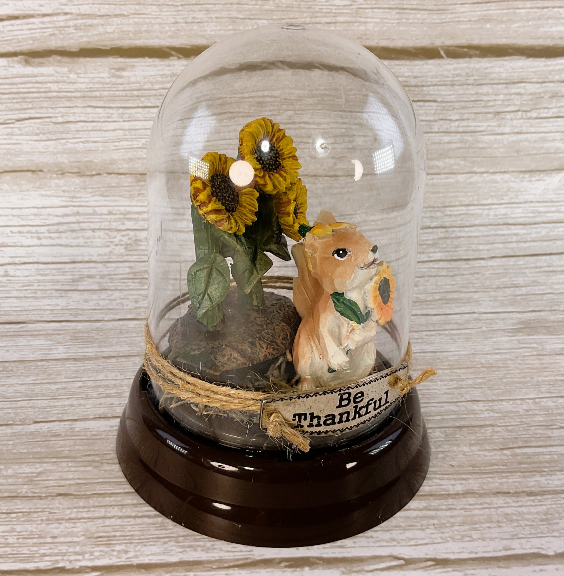ITEM: Fall Decor - Sunflowers Squirrel Cloche Small Dome Display