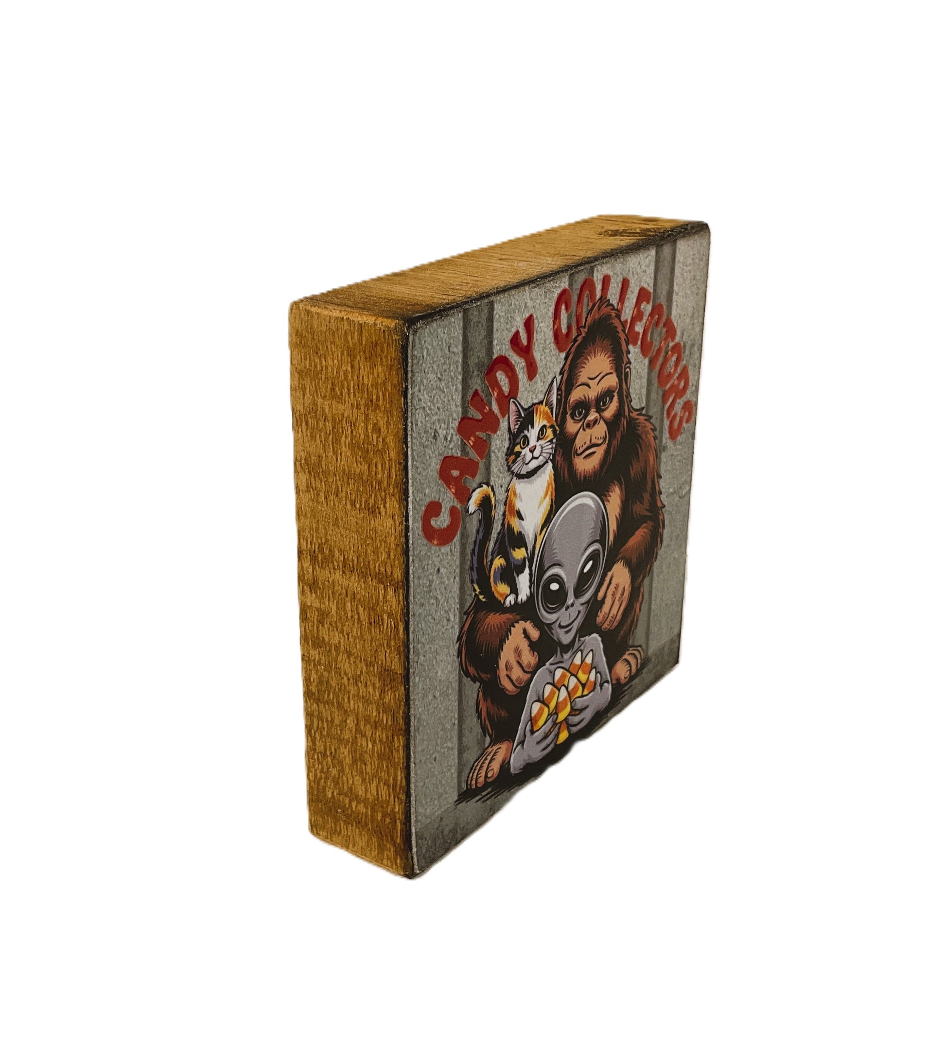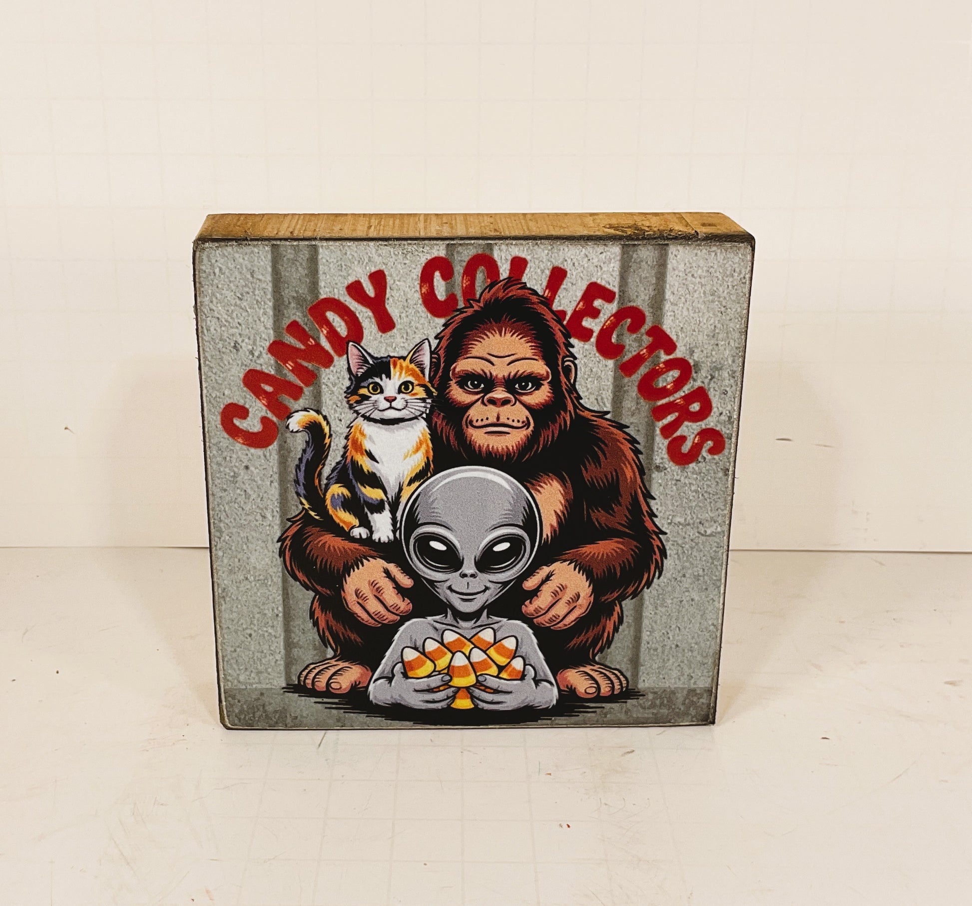 ITEM: Halloween Decor - Bigfoot Alien Candy Corn Small Block Sign