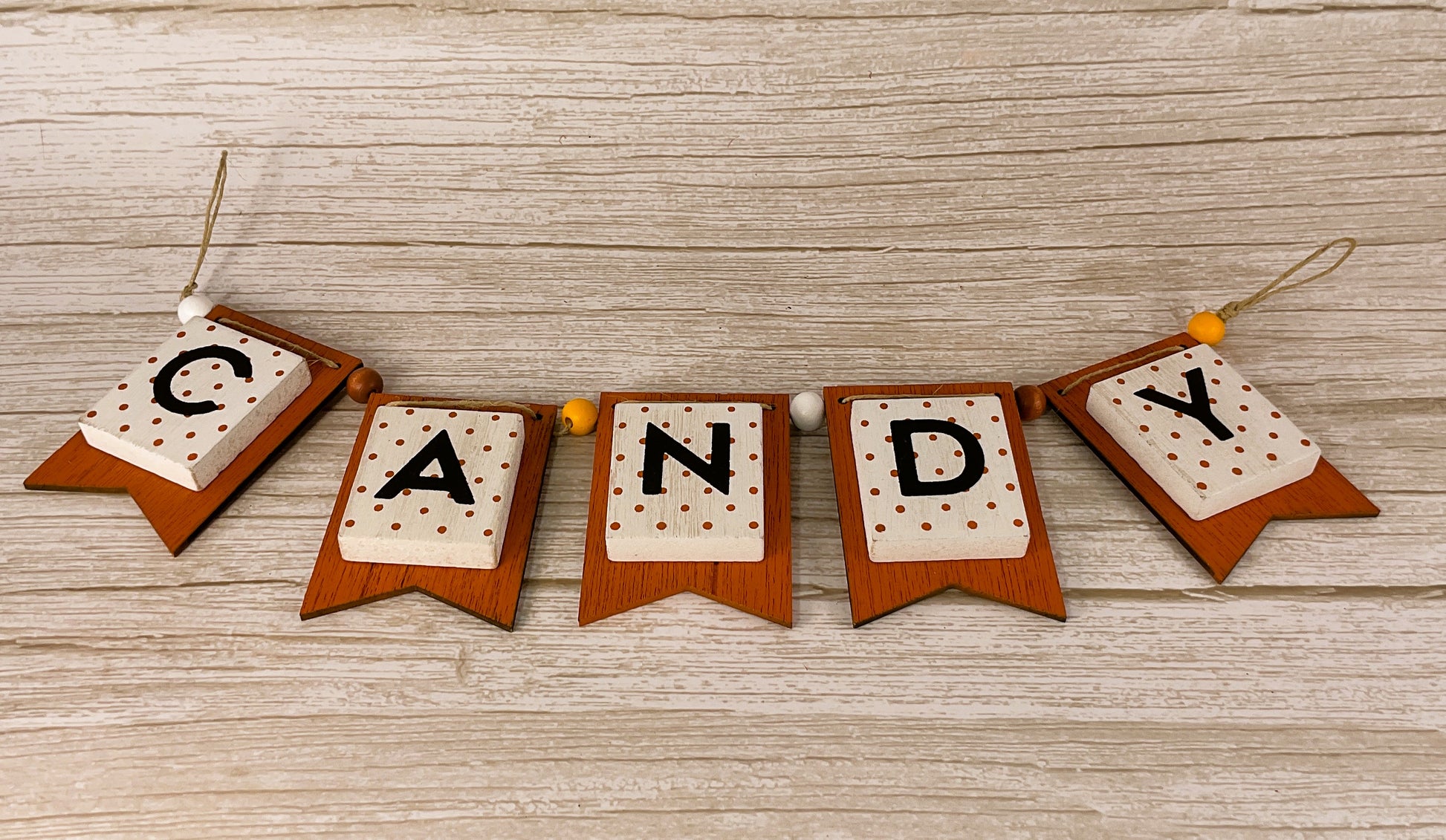 ITEM: Halloween Decor - SMALL Candy Wood Tile Banner Garland