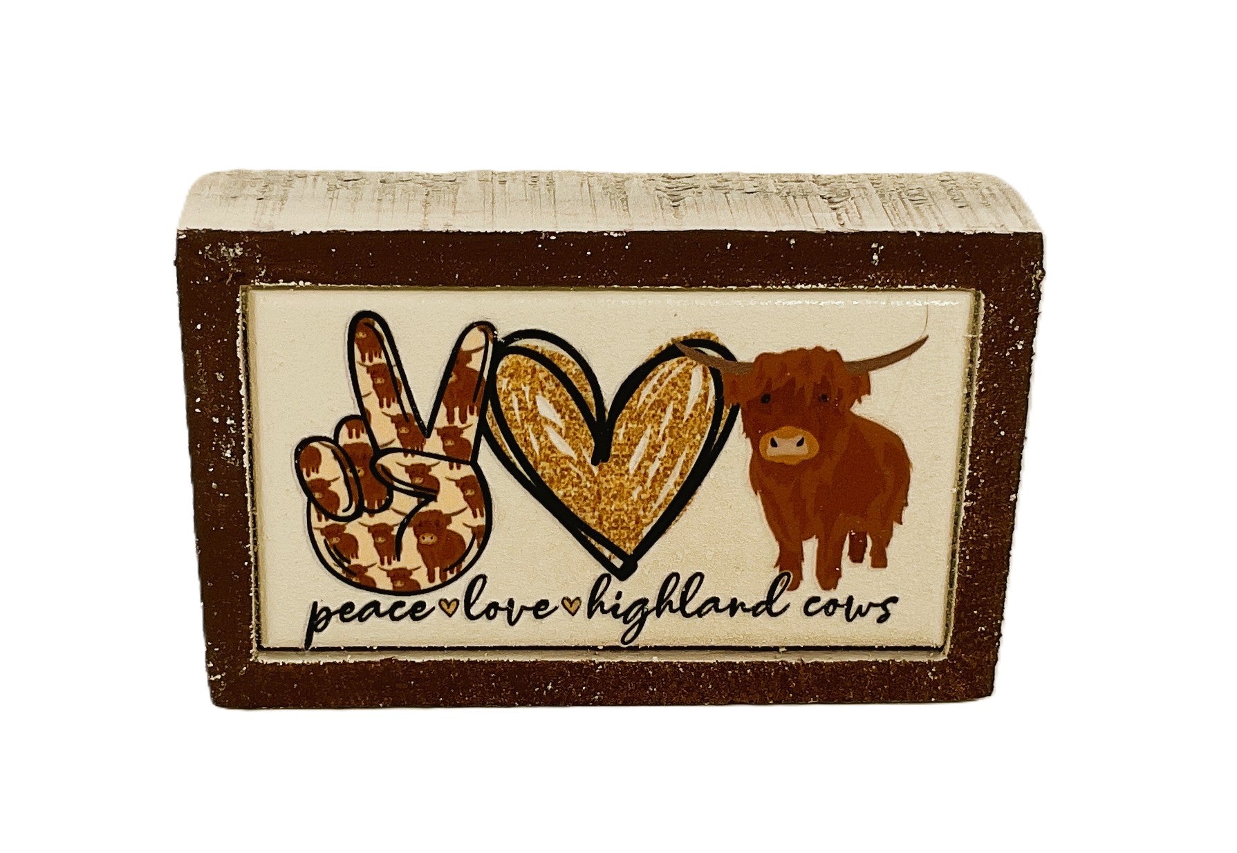 ITEM: Home Decor - Peace Love Highland Cow Small Tier Tray Sign