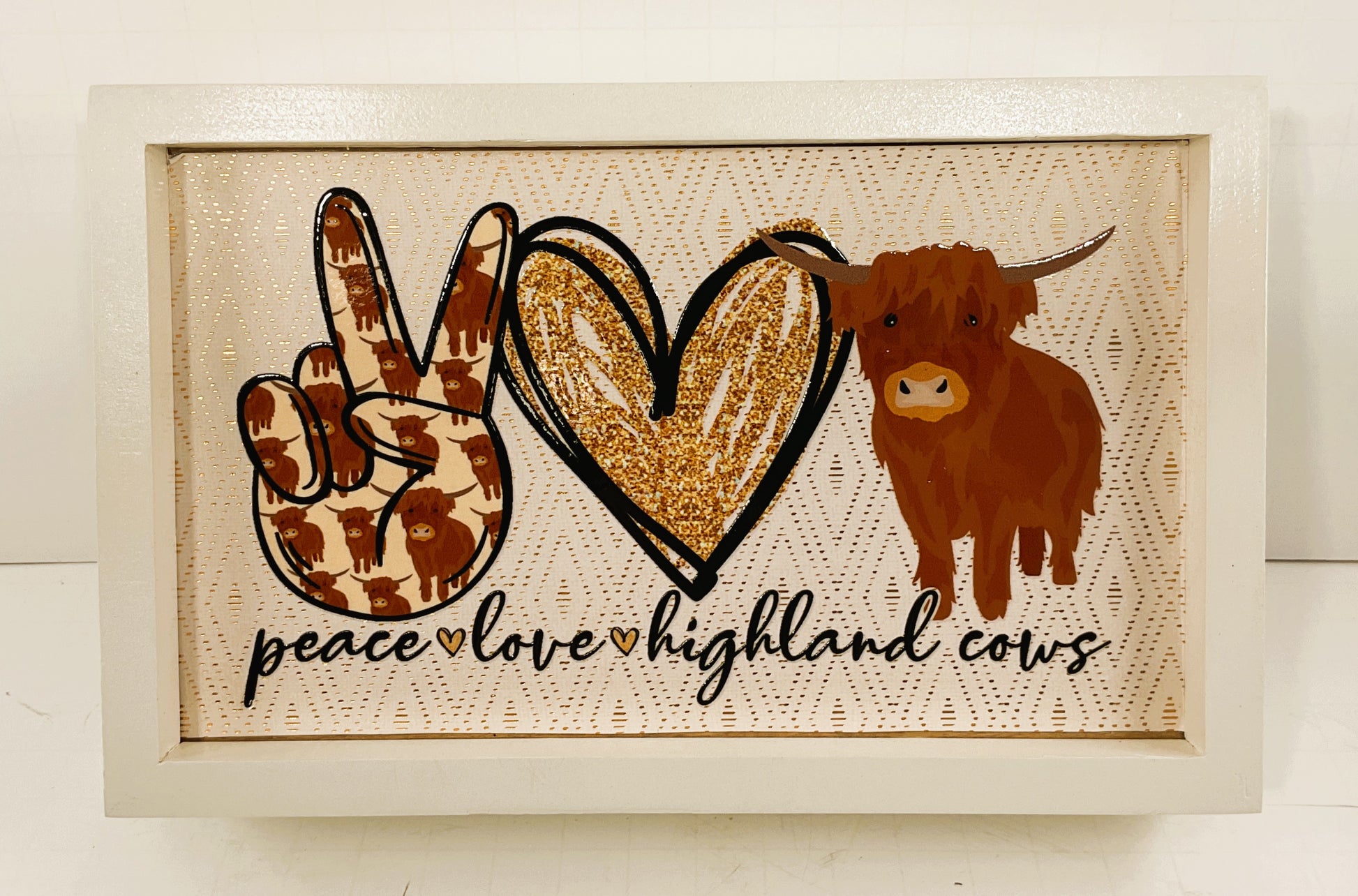 ITEM: Home Decor - Peace Love Highland Cows Farmhouse Box Sign