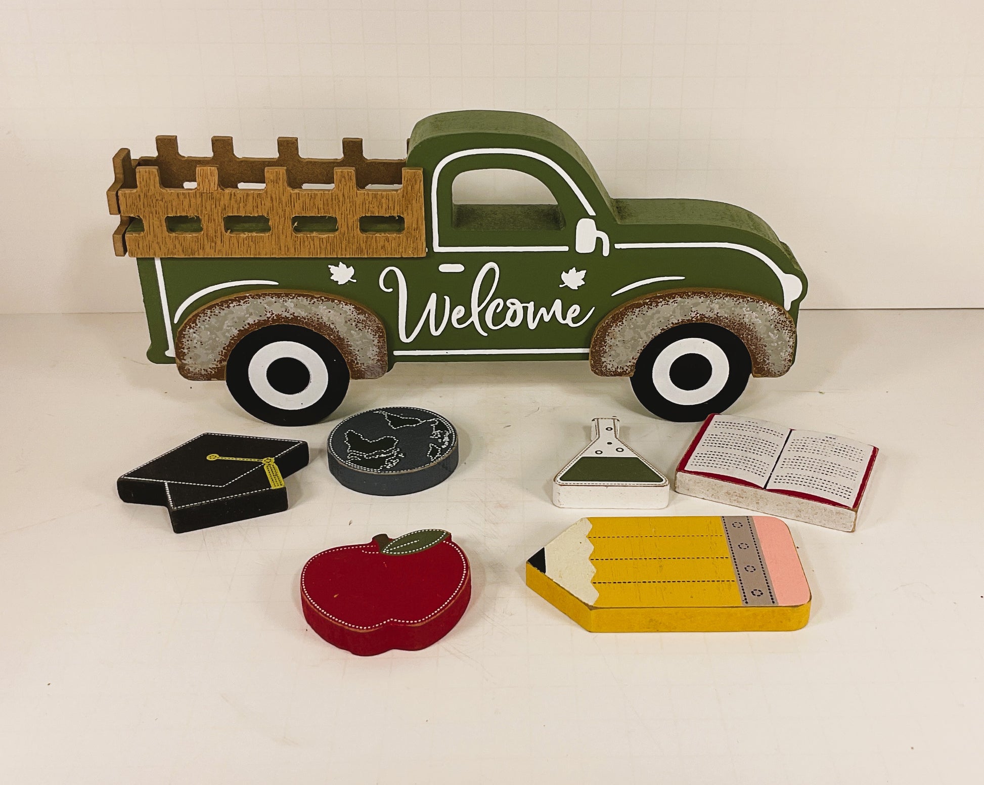 ITEM: Teacher Decor - Back To School Chunky Wood Truck Tabletop