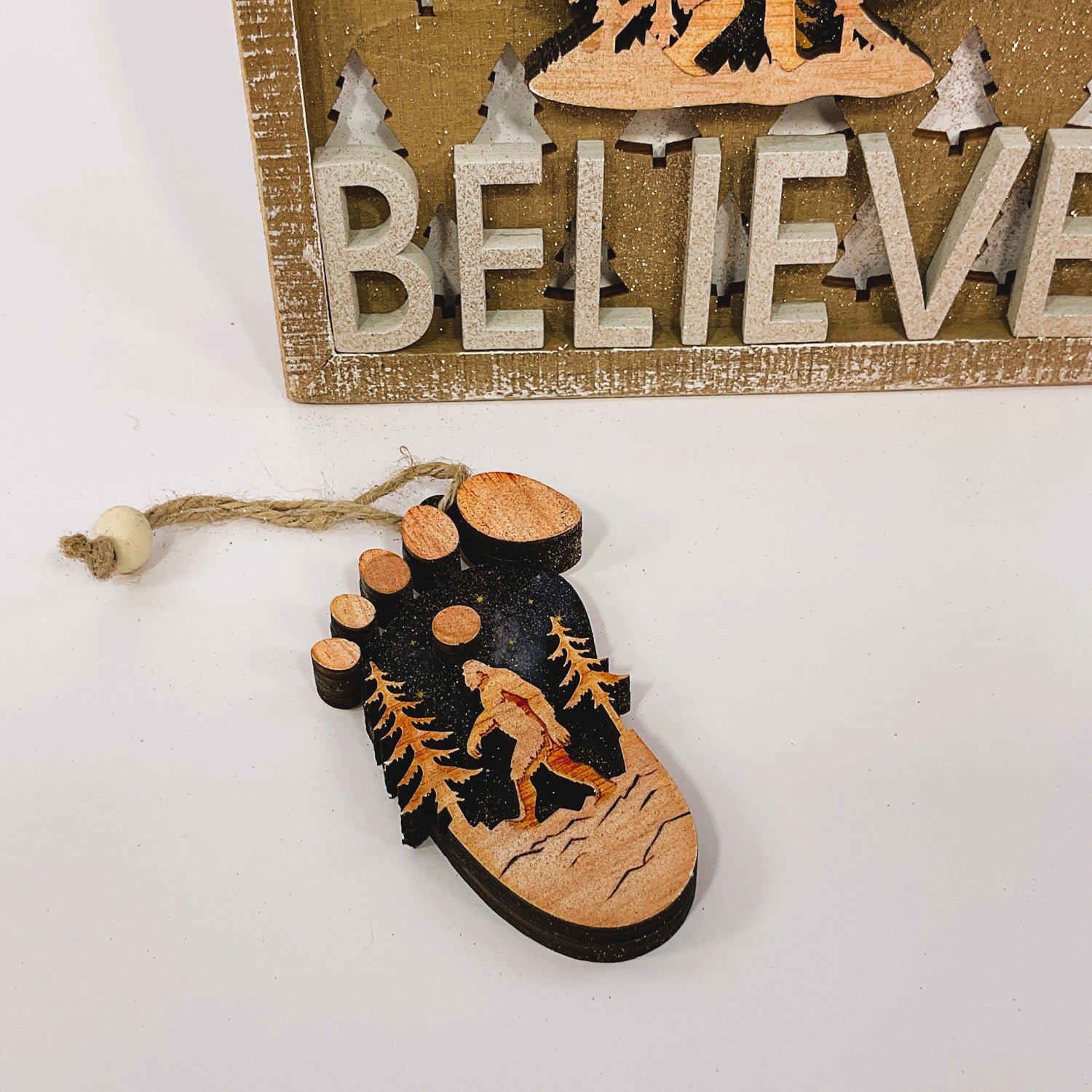 ITEM: Christmas Decor - Believe Bigfoot Tree Inset Box Sign
