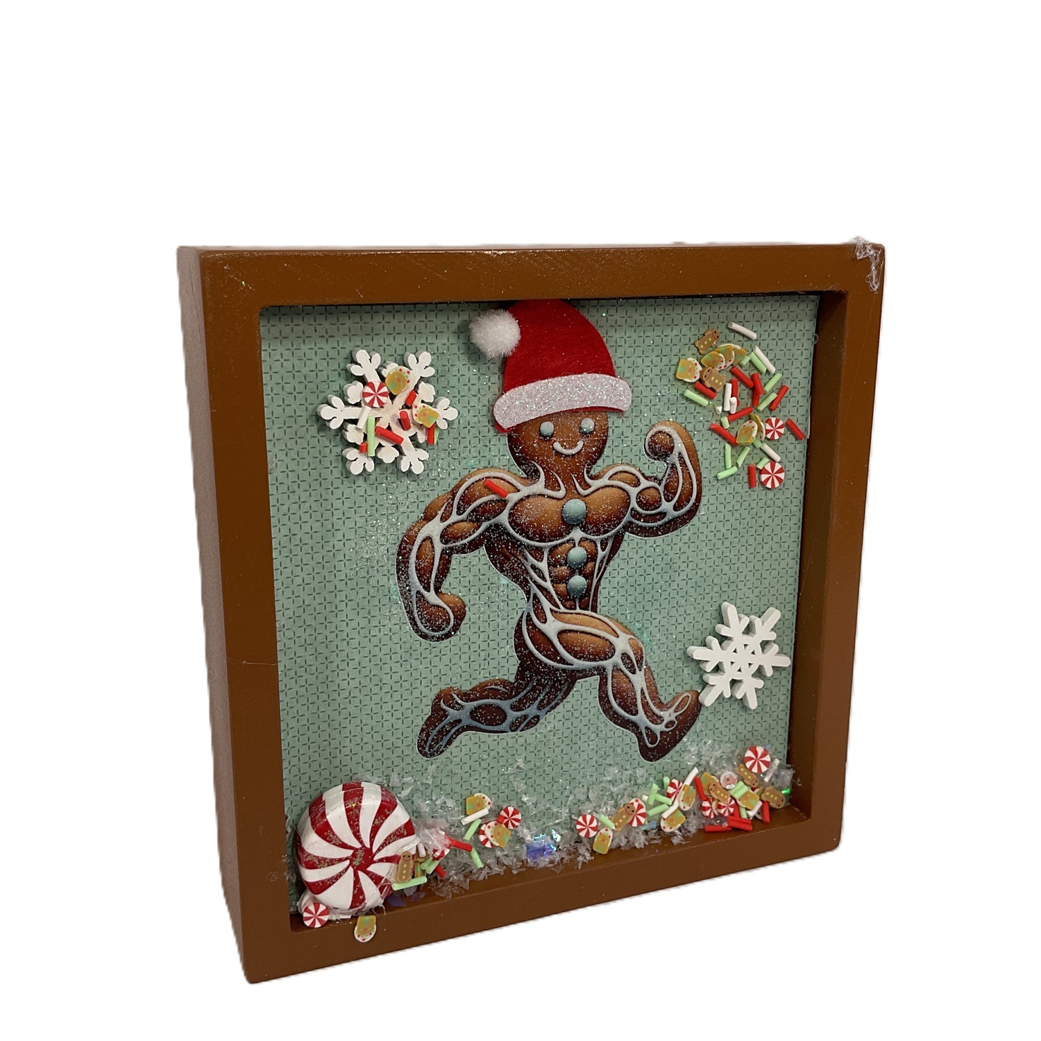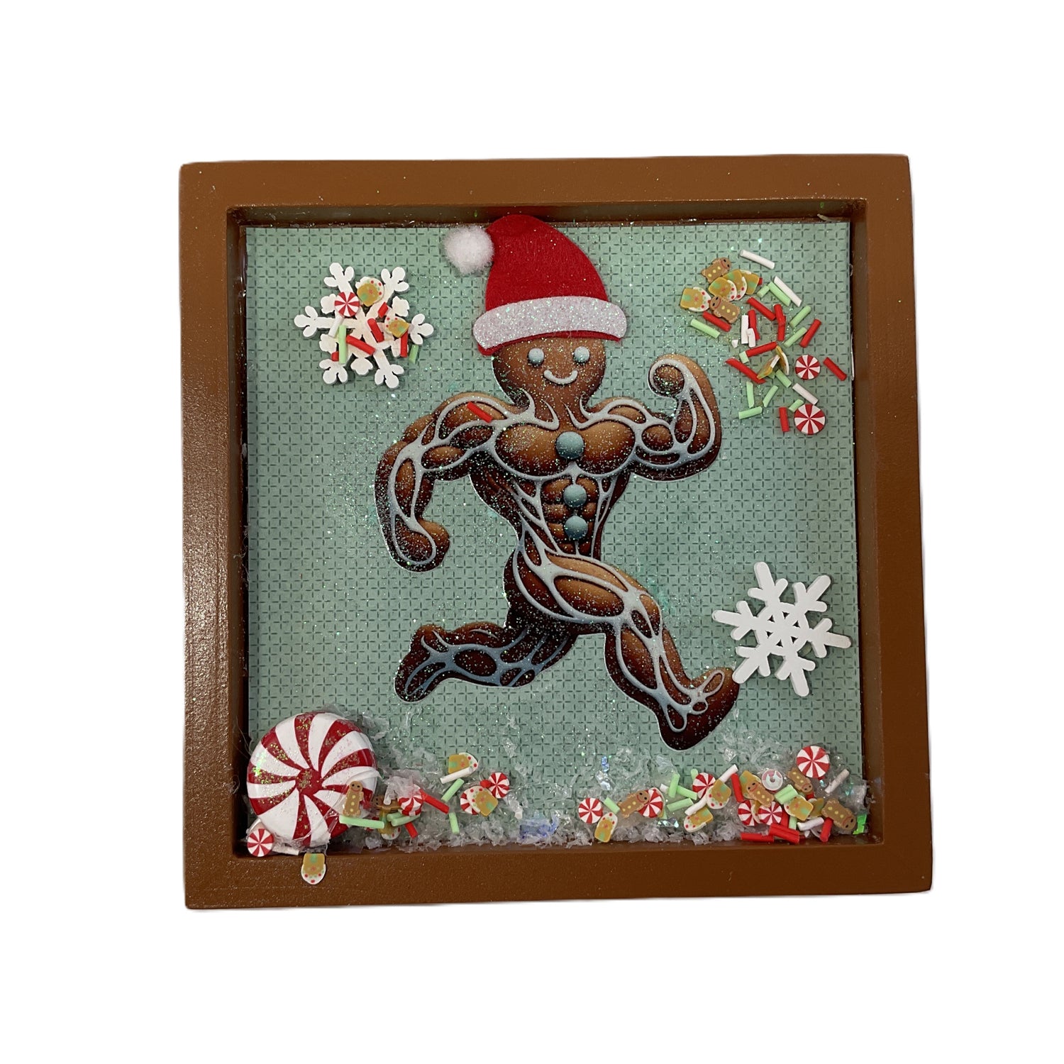AGSD Christmas Decor - Gingerbread Muscle Man Gym Inset Box Sign