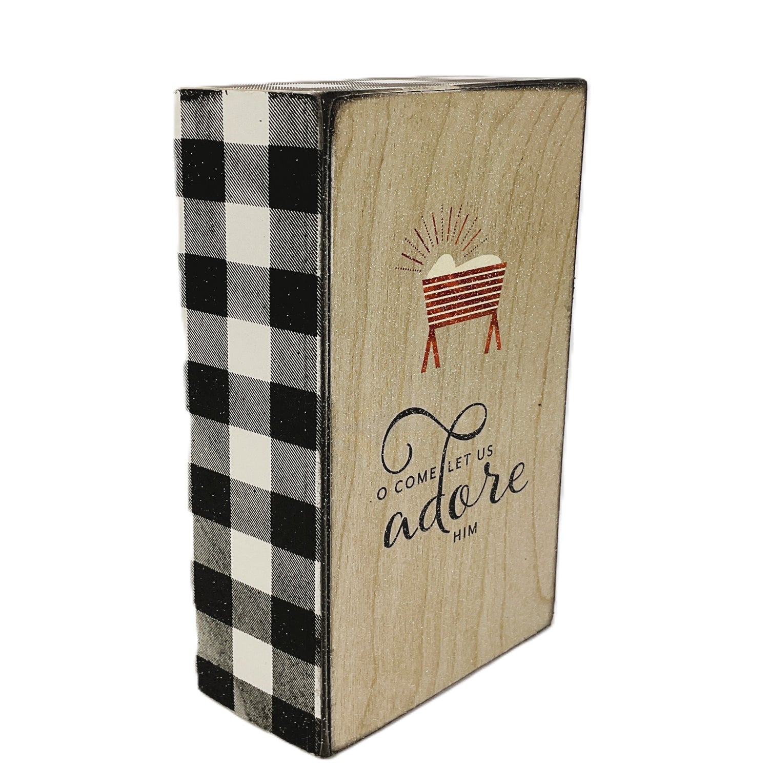 ITEM: Christmas Decor - Nativity Adore Black White Buffalo Check Sign