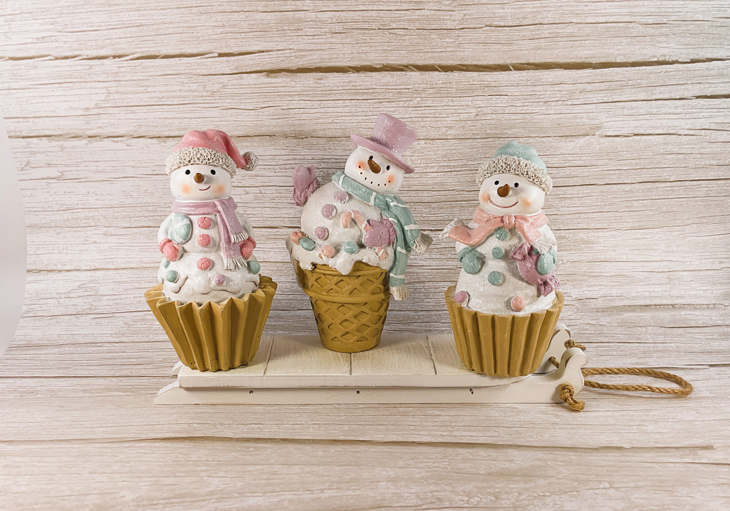 ITEM: Christmas Decor - Pastel Snowmen Cupcake Cone Sled 4pc Set