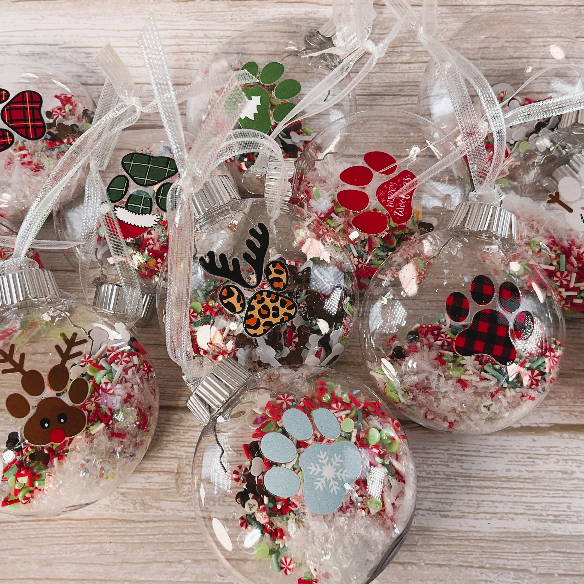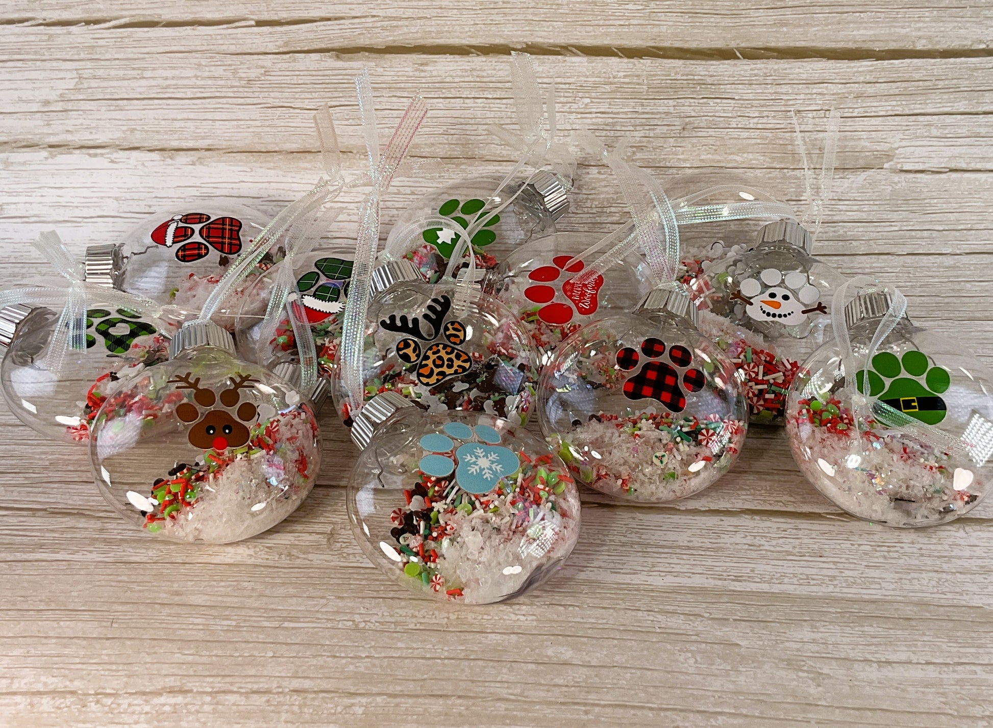 ITEM: Christmas Decor - Puppy Dog Paws Fill-able Round Ornaments 12pc