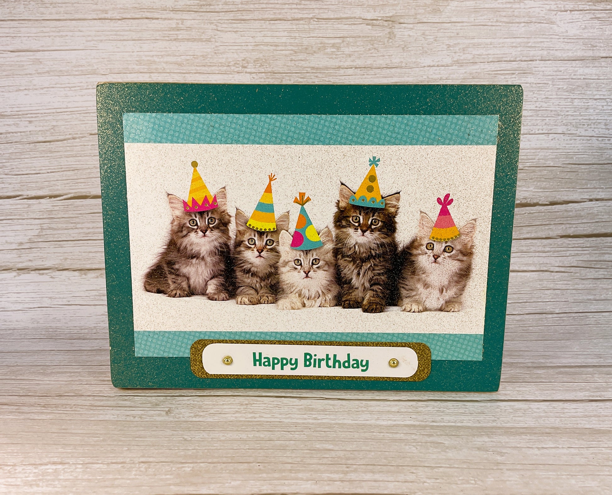 AGSD Home Decor - Happy Birthday Party Hat Kitty Cat Tabletop Box Sign