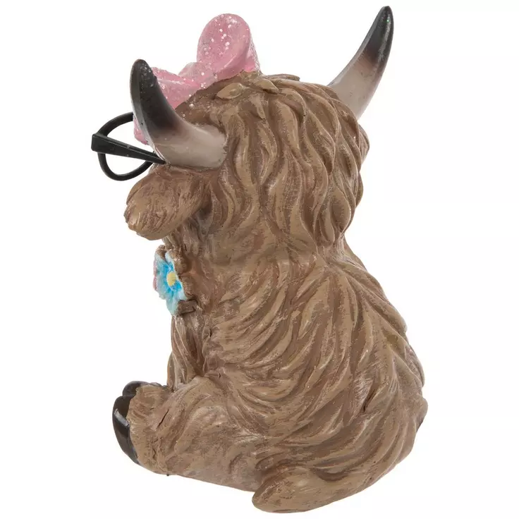 HL Easter Decor - Resin Scottish Highland Cow Couple Figurines 3pc Set