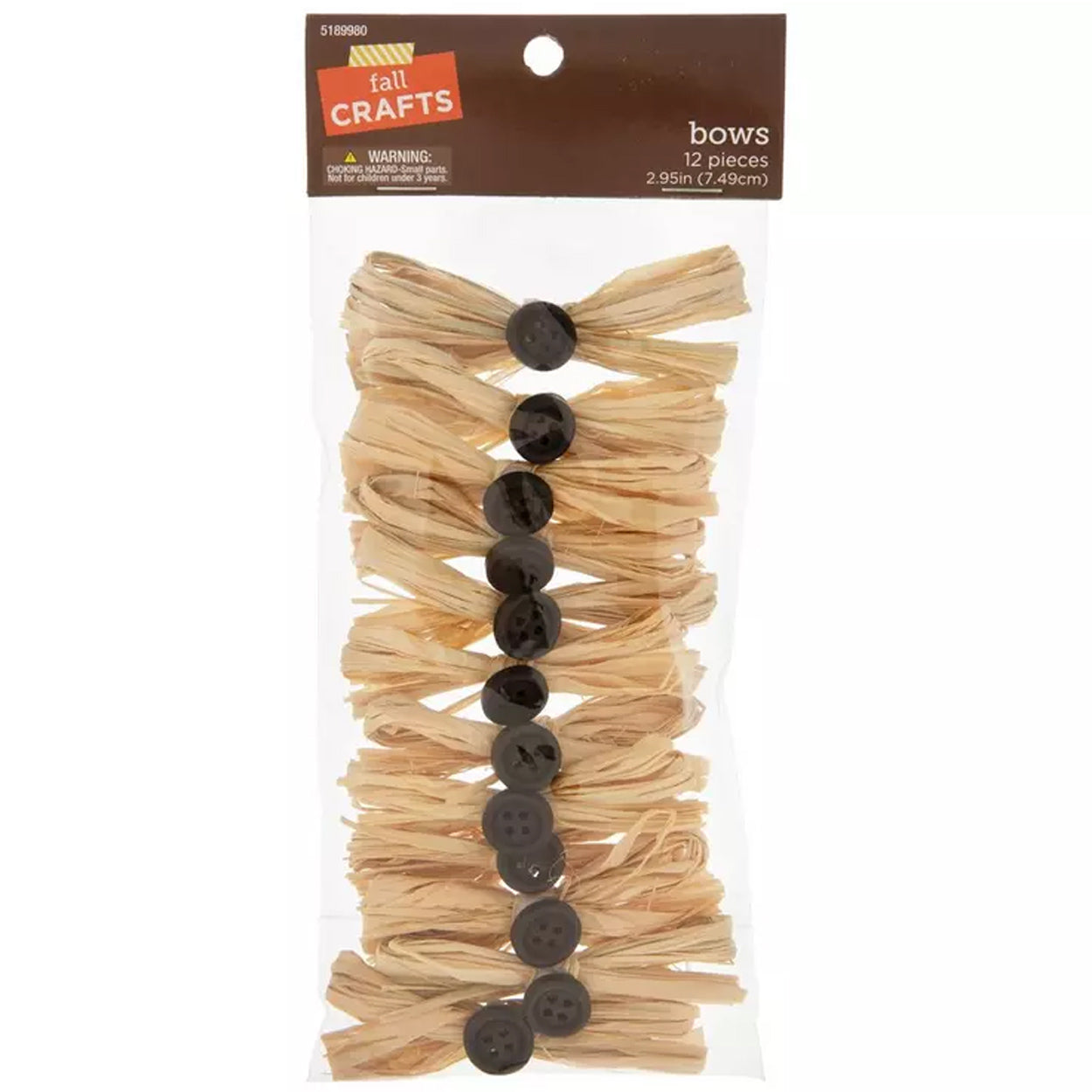 ITEM: Fall Craft Supply - Natural Small Raffia Button Bows 24pc